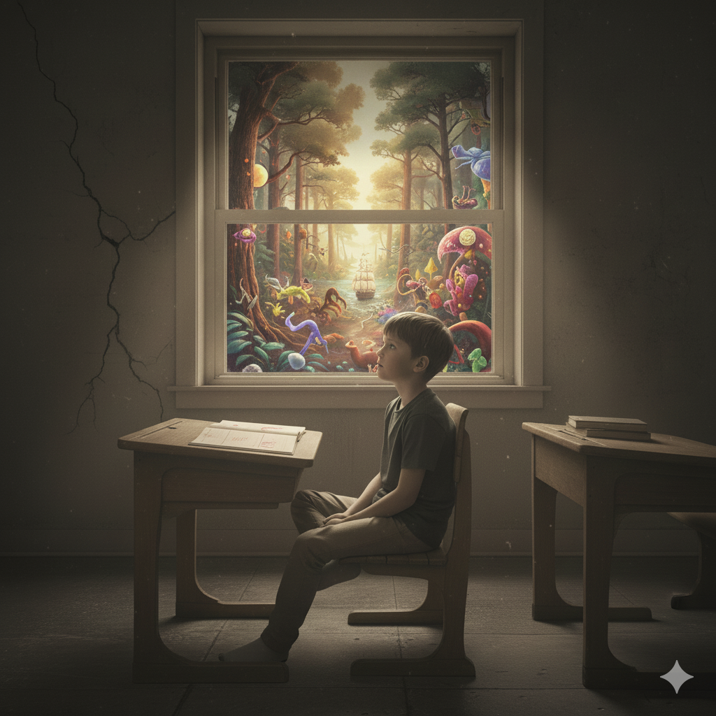 Die ersten Risse kamen nicht mit einem Knall, sondern leise. Es war die zweite Klasse, als man mir zum ersten Mal sagte, dass ich „zu viel träume“. Ich saß am Fenster, draußen flatterte ein Vogel vorbei, und mein Kopf flog mit. Während die anderen Kinder rechneten, war ich längst irgendwo…